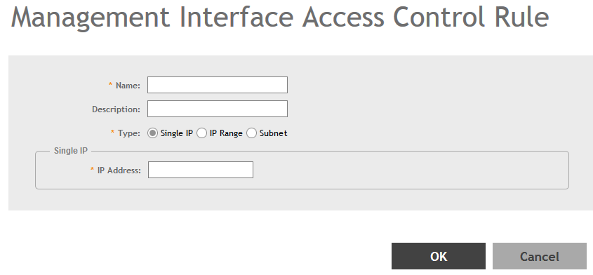 - Single IP: Type the IP address of the interface that can be accessed per this