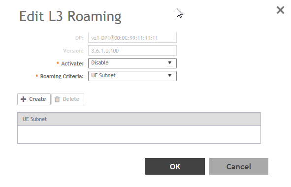 Roaming Criteria that you set, you will be able to add a UE subnet or a VLAN ID to the selected DP. Click