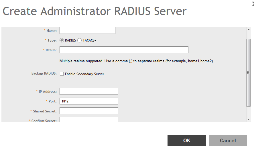 - Realm: Type the realm (or realms) to which the RADIUS server belongs. If the RADIUS