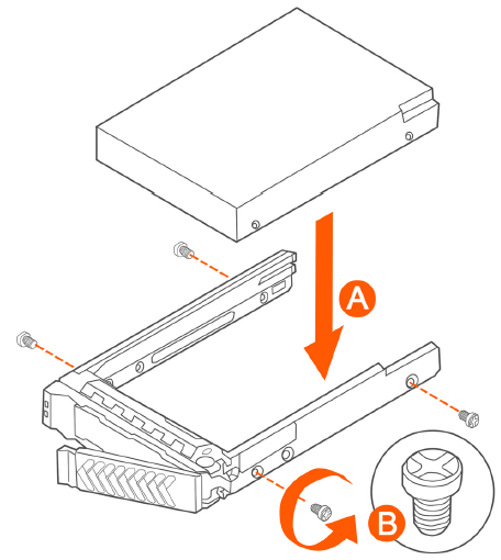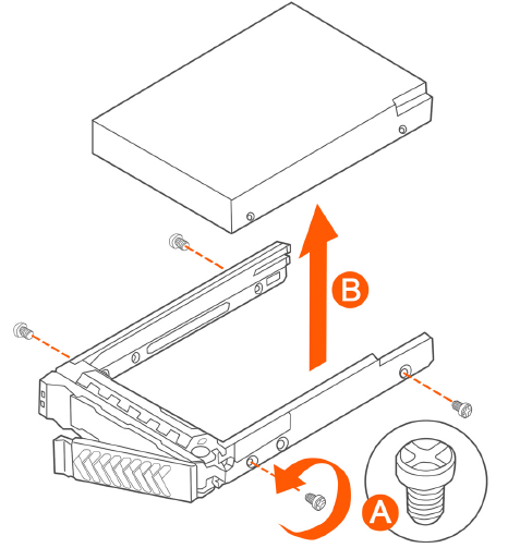 Install the new drive in the drive carrier (see A in Figure 157), and then secure the drive with the