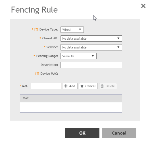 - Closest AP: Select the closest AP to create a physical anchor point for fencing, and the closest AP is auto-detected for wireless devices, based on the AP association.