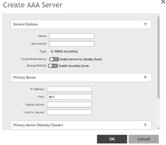 - Port: Type the port number of the AAA server. The default RADIUS server port number is 1813.