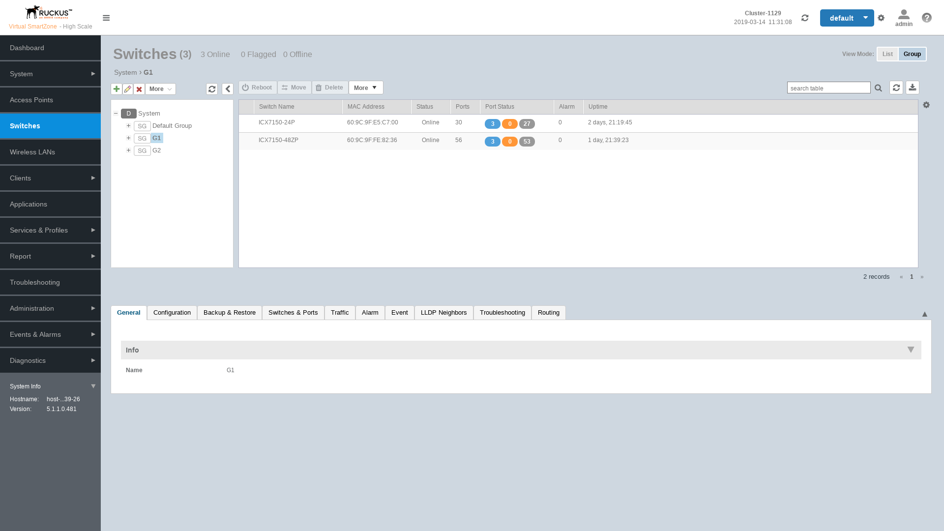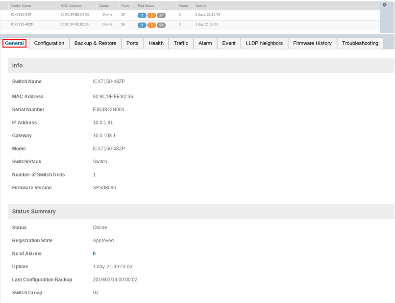 The following information about the selected switch is displayed in the General tab:- Switch Name: The name of the switch or group