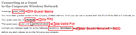 After you generate the guest pass, you can print the guest pass information, which contains the guest user information and instructions on how to connect to the hotspot, and give it to the guest user.