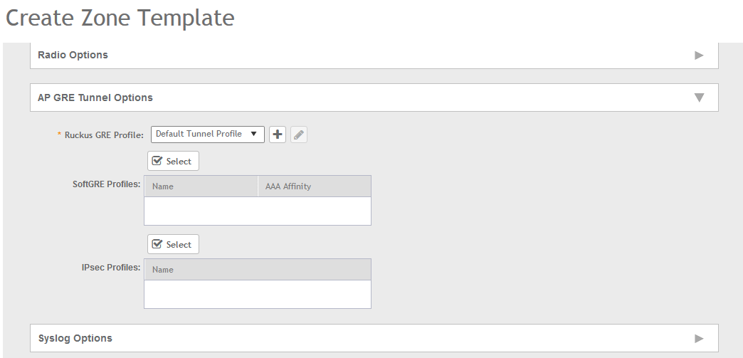 4. For the Ruckus GRE Profile select a profile from the drop-down menu.