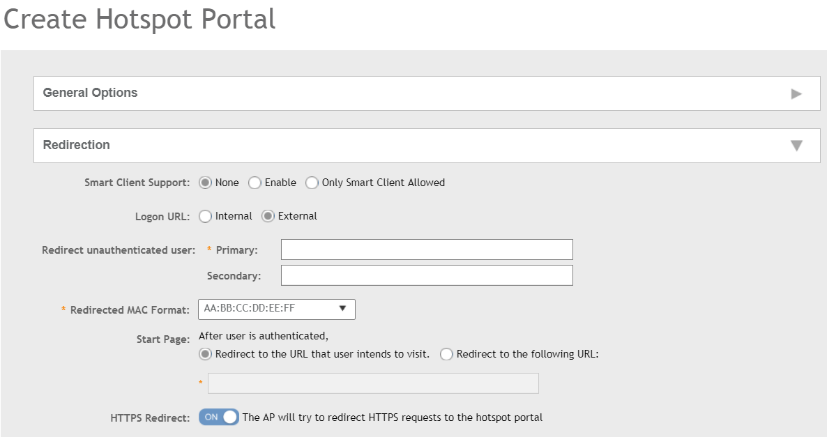 HTTPS Redirect if you want the AP to redirect HTTPS requests to the hotspot portal. HTTPS requests are dropped if this option is disabled.