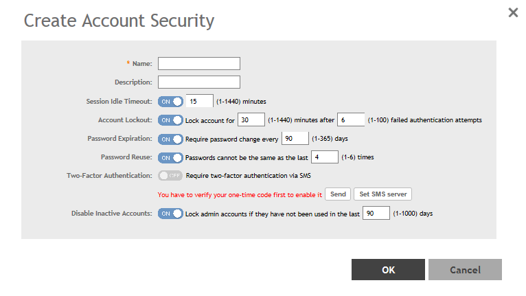 Creating an account security profile enables end-users to control administrative accounts to better manage admin accounts, passwords, login, and DoS prevention.