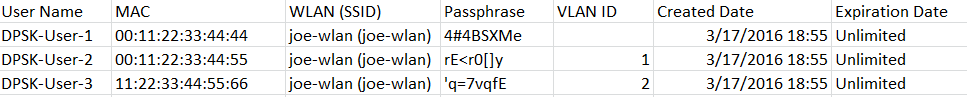 You can import CSV files to create DPSKs to secure the WiFi network.