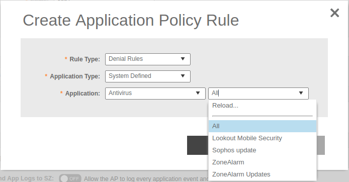 All in the application category and save the application rule, the application rule list reflects all Antivirus applications and is selected as a single entry in the rule list. A full category is counted as one rule in the allotment of 128 Layer 7 rules in a Layer 7 policy.