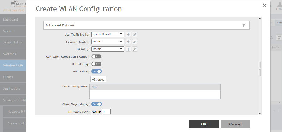 Figure 170  Configuring WiFi Calling in a WLAN
