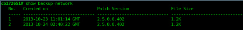 Enter show backup-network to view a list of backup files that have been created.