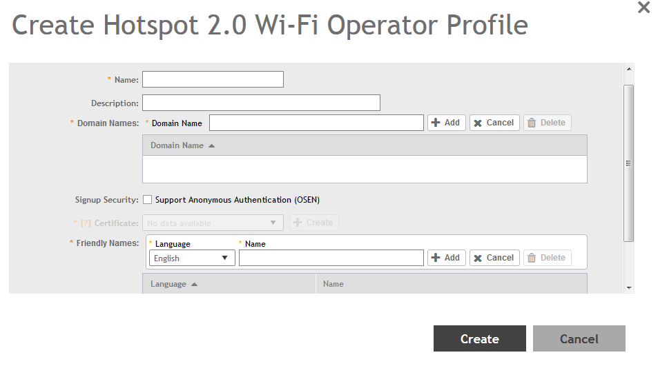 Creating Hotspot 2.0 WiFi Operator Profile page appears.
