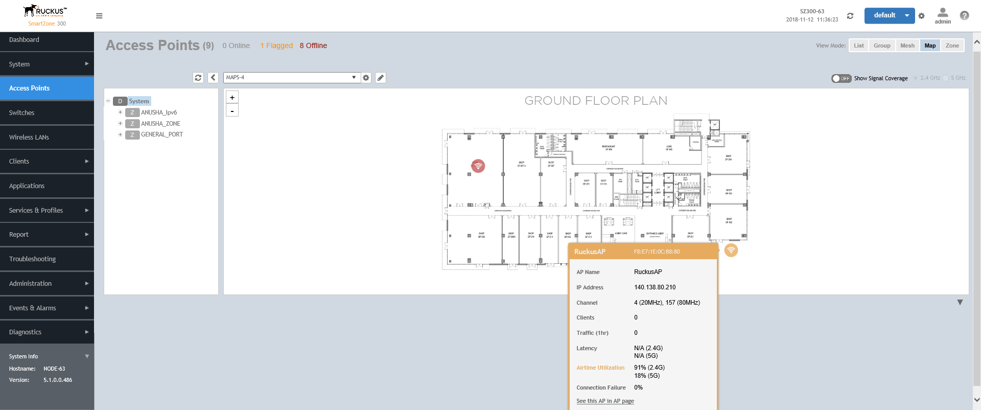 Use the Map view on the Access Points page to monitor APs in relation to your venue's floorplan.