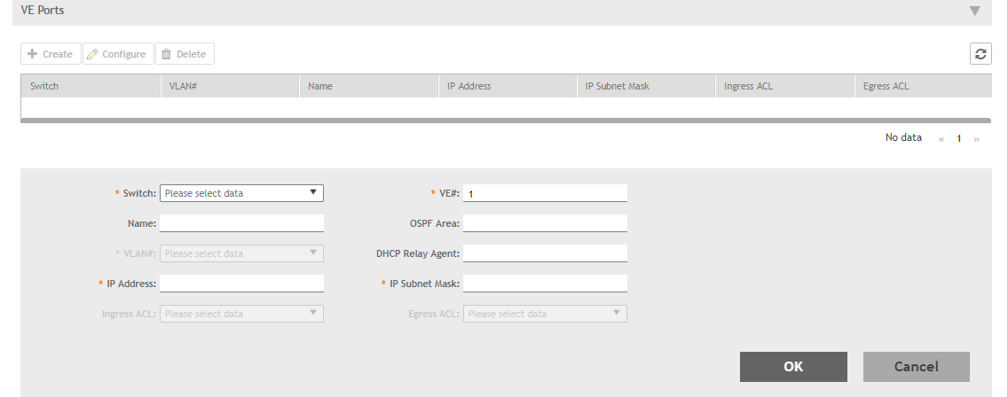 The VE Ports page is displayed.Configure the following VE port information:Figure 88 VE Ports Page