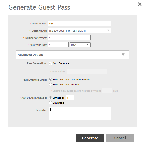 If you are generating more than one guest pass, the Auto Generate check box