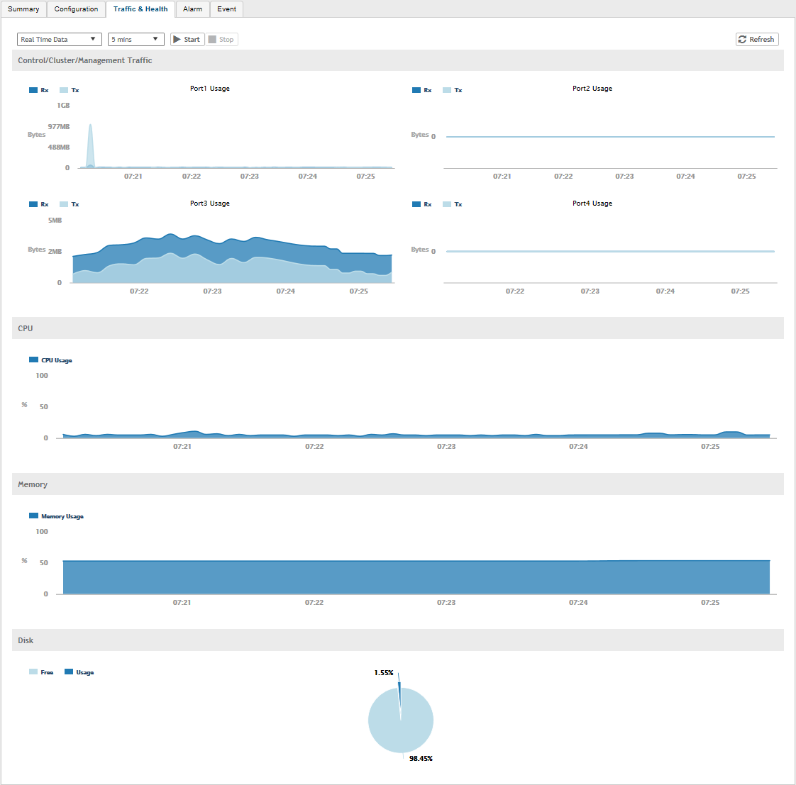 The Cluster Node Traffic and Health tab displays as shown in the diagram below.