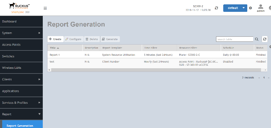 You can create reports to obtain a historical view of the maximum and minimum number of clients connect to the system, to view client number at different time intervals and to view the traffic statistics of switches.