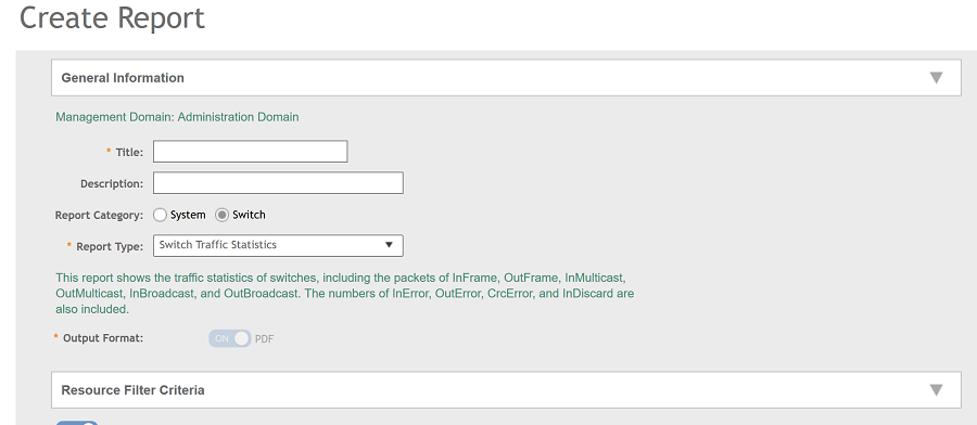 | Report Category | Provides an option to generate reports for System or Switch devices in the network. | Select System or Switch as appropriate. |