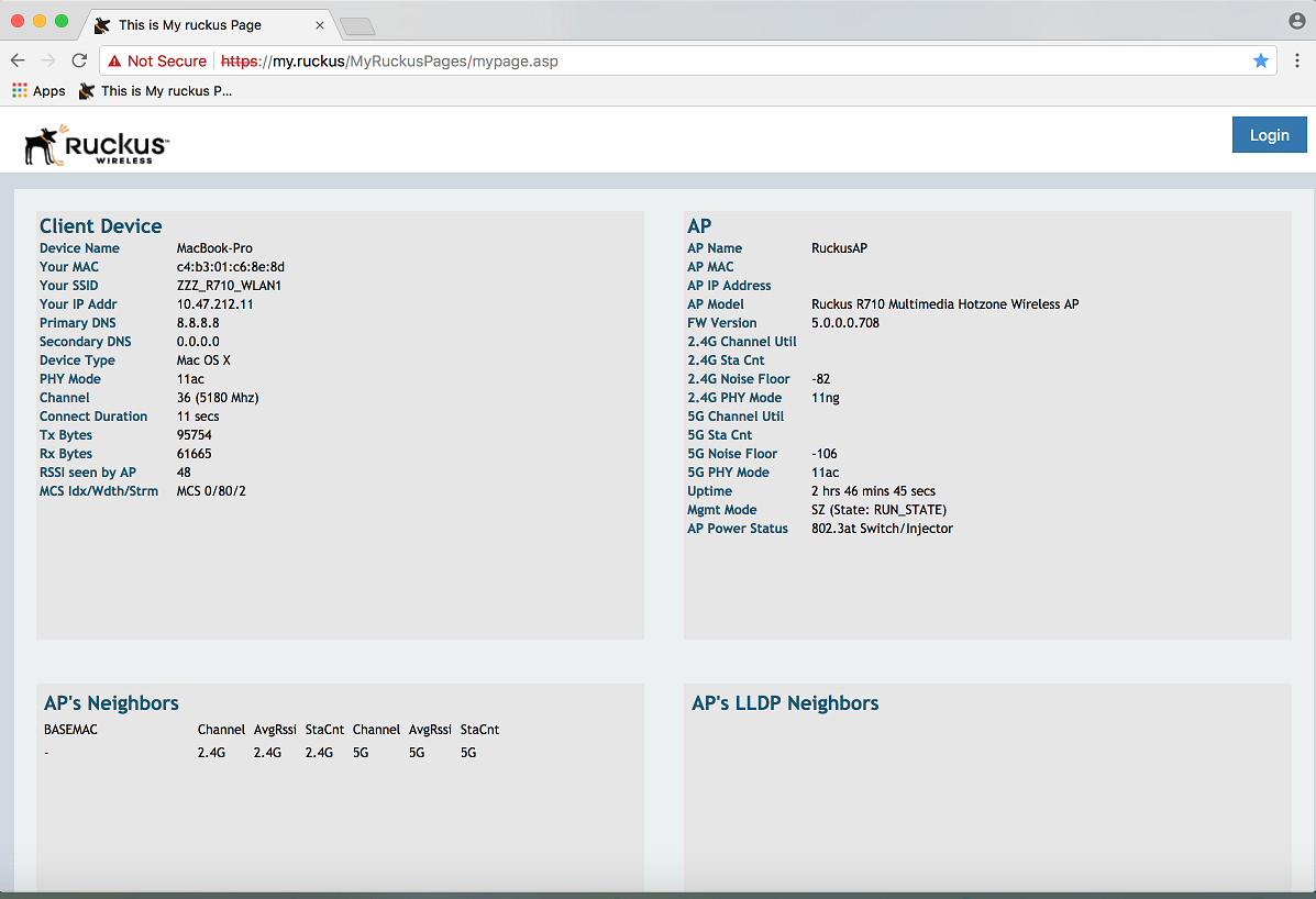 https://my.ruckus when connected over an Open or WEP WLAN, the diagnostic information is restricted for security reasons.