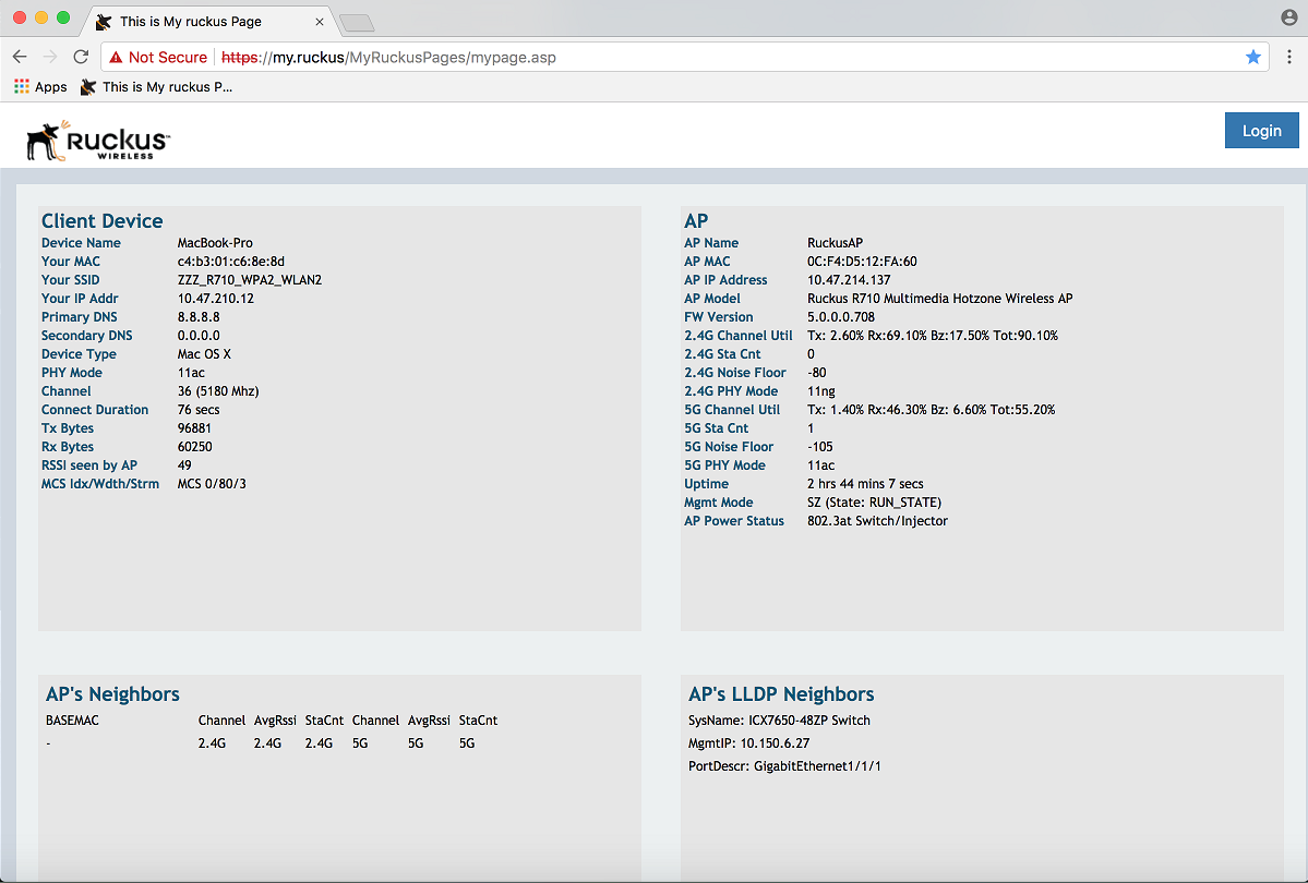 https://my.ruckus on a web browser and view the following diagnostic information: