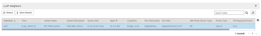 - Mgmt IP: displays the management IP address of the LLDP neighbor