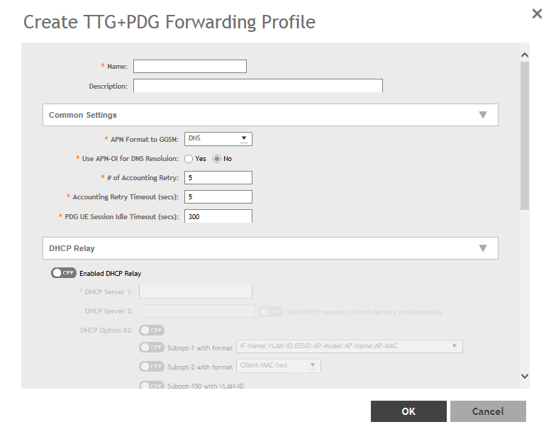The Create TTG+PDG Forwarding Profile page appears.Figure 196 Creating a TTG+PDG Forwarding Profile