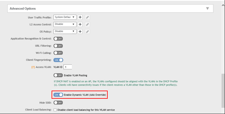 - WLAN authentication method must be set to 802.1X, MAC address or 802.1X + MAC address