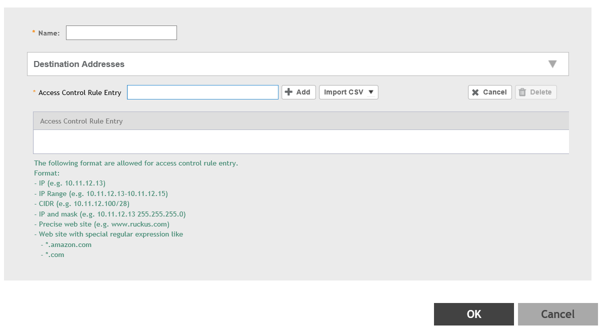 Access Control Rule Entry field, enter an access control rule in the proper format.