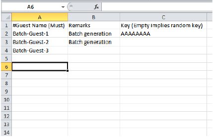 You can also manually define the guest passes that you want to generate in a comma-separated value (CSV) file (a sample of which is available for download from the