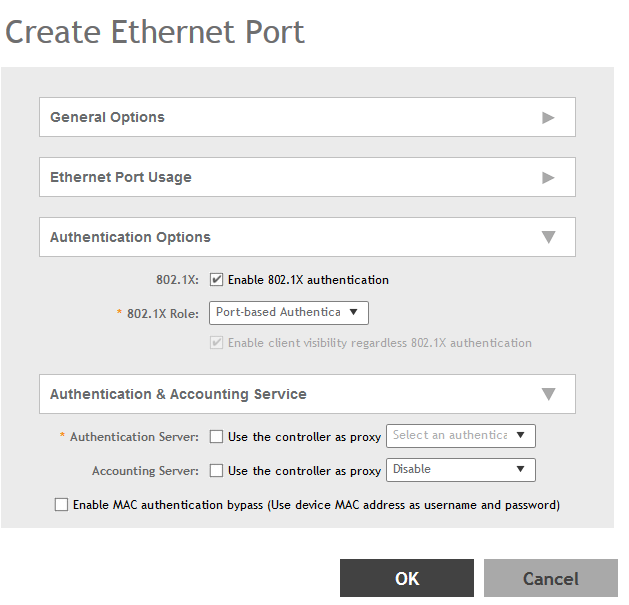 - Authentication Server: Select the check-box and a controller from the drop-down menu to use the controller as a proxy authentication server.
