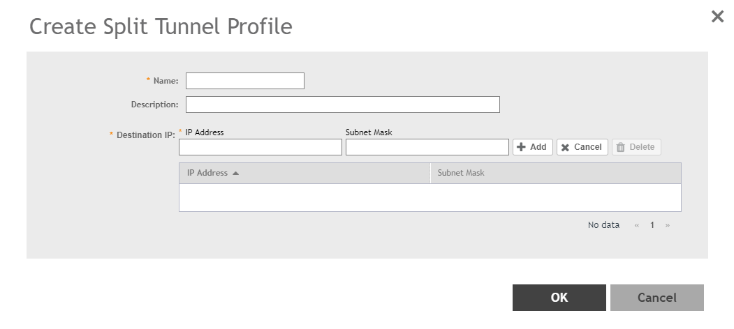 Split Tunnel tab, and then select the zone for which you want to create the profile.