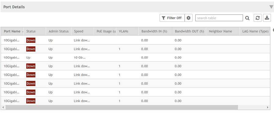 The Port Details page provides the following information on each port:NOTEPorts for switch stacks are not configurable from the Port Details page.- Port Name: The port name