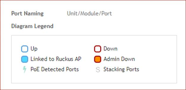 The following figure shows the diagram legend used in the Ports View page.Figure 94 Diagram Legend