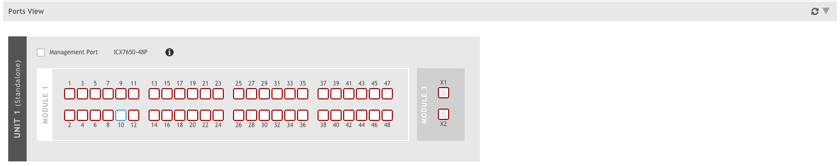 The following list further describes items in the Ports View legend.- Up: Ports that are up or active
