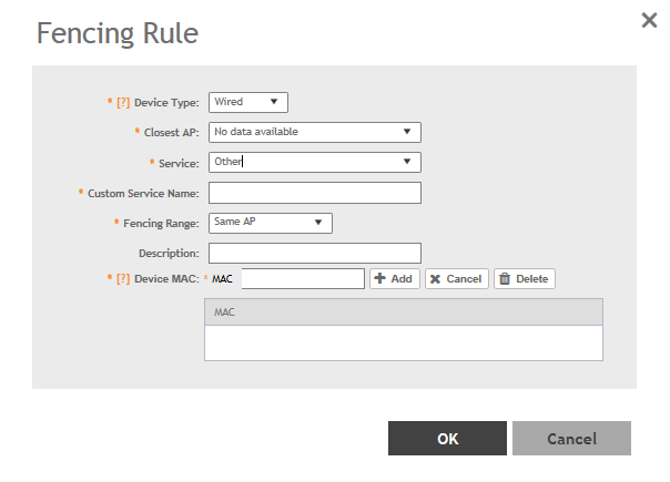 - Closest AP: Select the closest AP to create a physical anchor point for fencing, and the closest AP is auto-detected for wireless devices, based on the AP association.